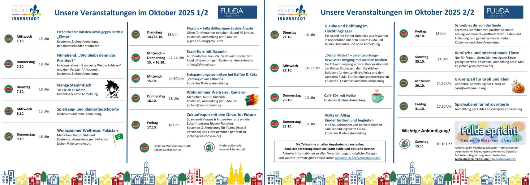 Auch im Oktober ist bei uns im Stadtteiltreff und Familienzentrum wieder viel Spannendes geboten!