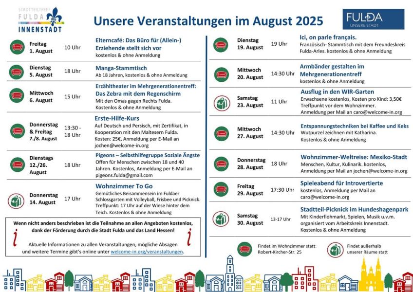 Freut euch auf einen Erste-Hilfe-Kurs, eine "Wohnzimmer-Weltreise" nach Mexiko Stadt, ein Stadtteil-Picknick und vieles mehr!